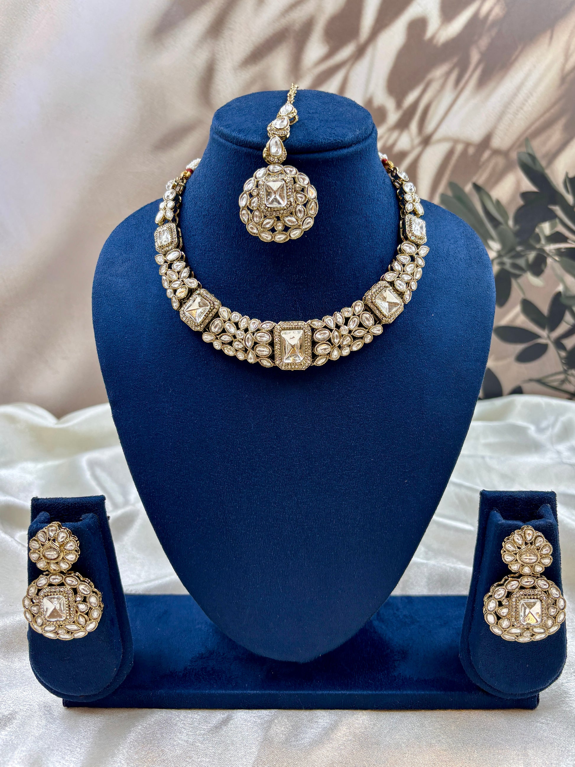 Material: High-quality Kundan, gold-plated metal, and sparkling gemstones