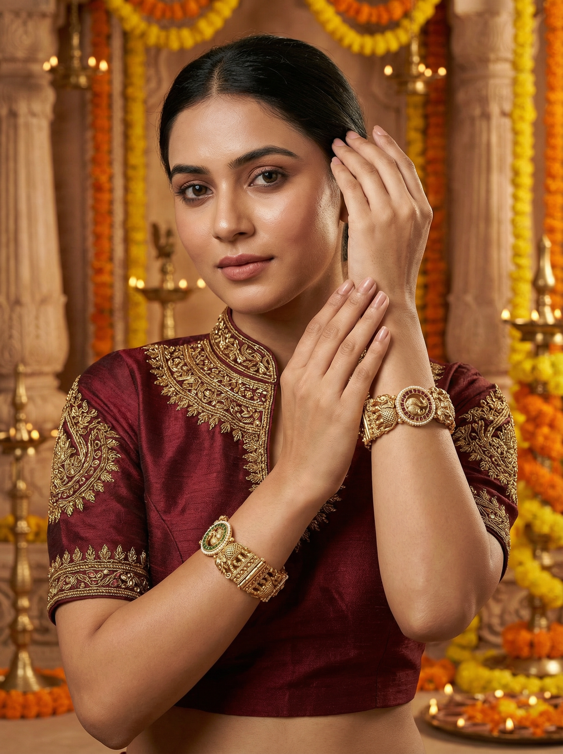 Channel the strength and grace of ancient royalty with this Elephant Openable Kada, a bold yet elegant piece inspired by India's rich cultural heritage. Featuring intricately carved elephant motifs—symbols of power, wisdom, and prosperity—this kada is a perfect blend of tradition and timeless craftsmanship.