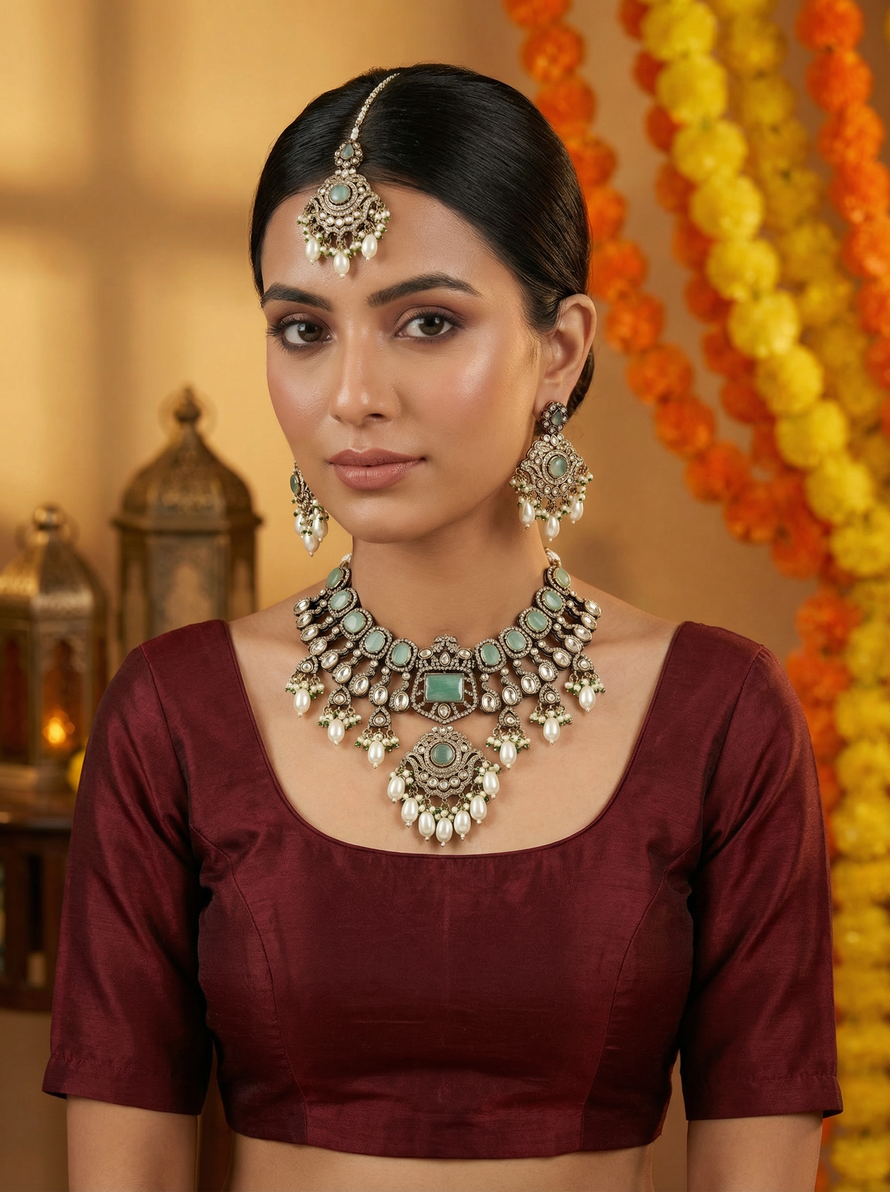Step into timeless elegance with the Mint Green Victorian Antique Jewelry Necklace, a delicate piece inspired by the grace and sophistication of Victorian-era craftsmanship. Featuring soft mint-hued accents paired with intricate antique-style metalwork, this necklace exudes a romantic, heirloom-worthy charm that complements both bridal and formal attire.