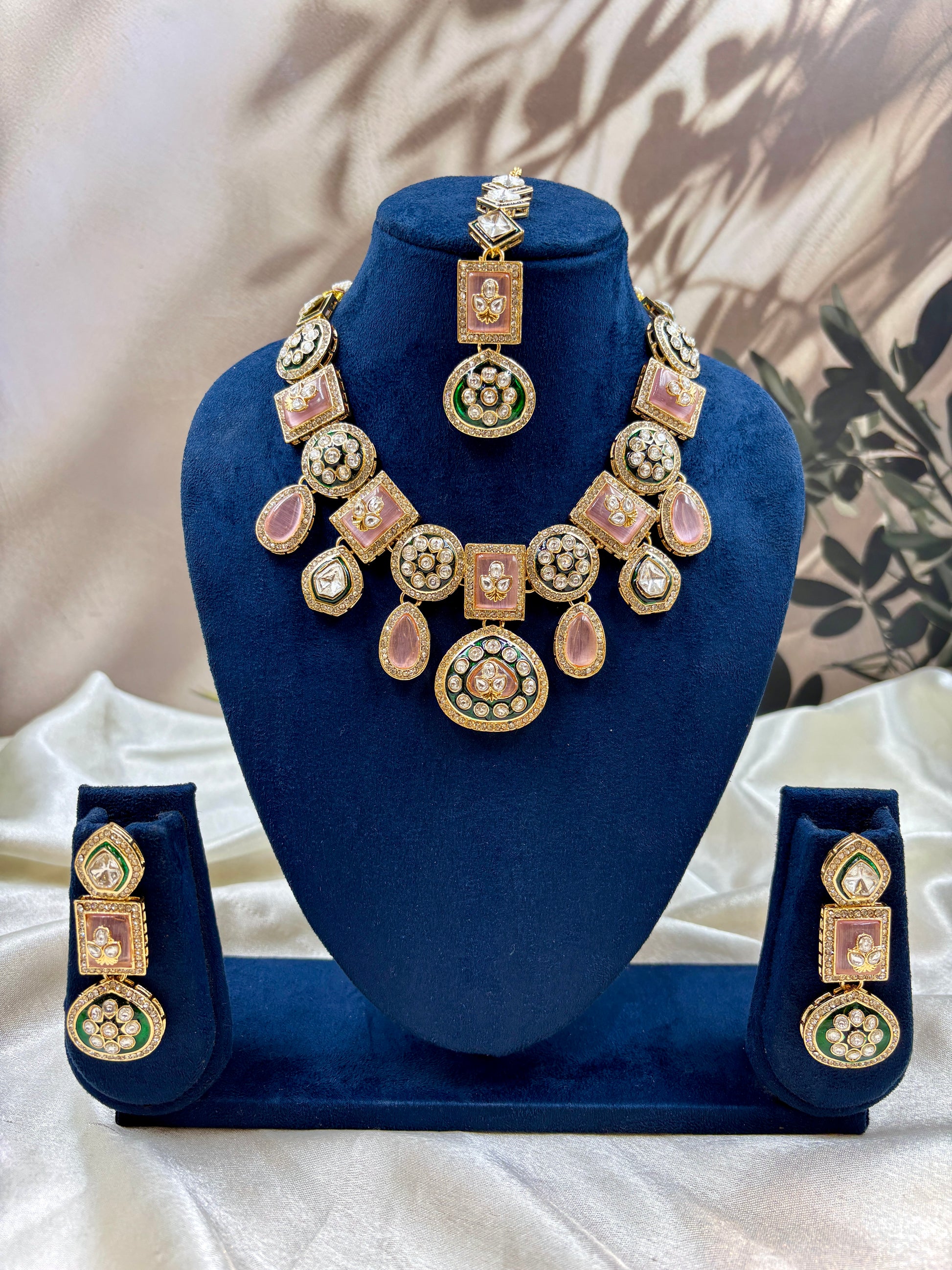 Polki Kundan Pink Bridal Jewelry Set