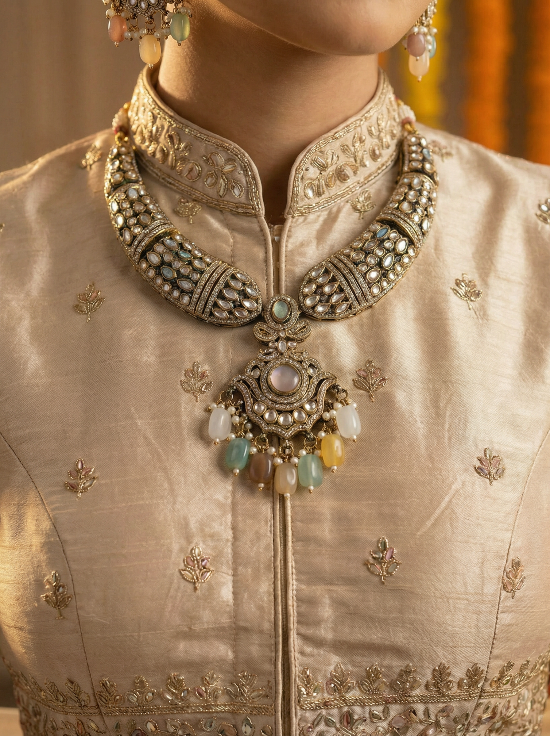 Victorian-inspired design with Kundan stone embellishments