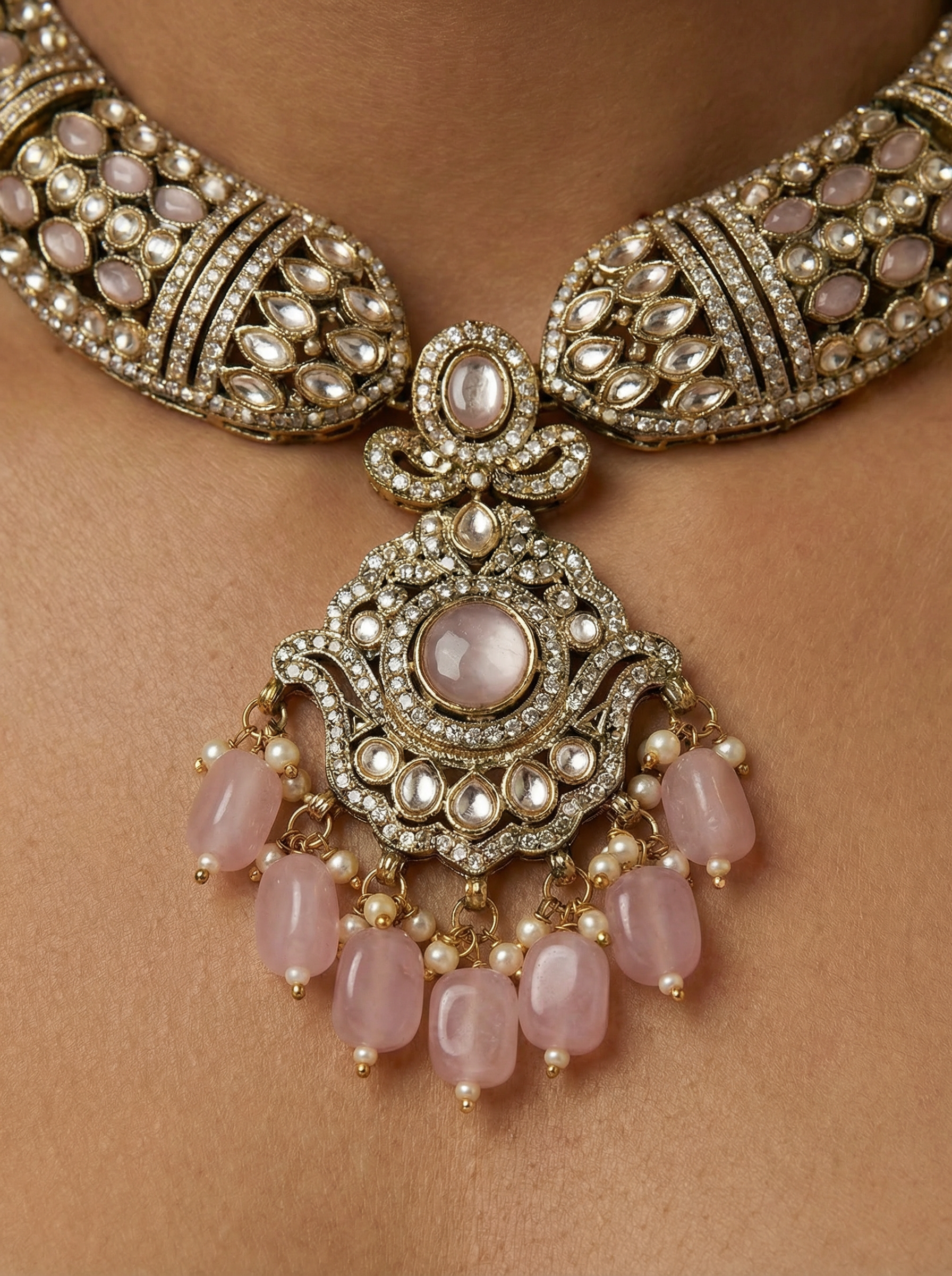Victorian Pink Kundan Necklace for Brides